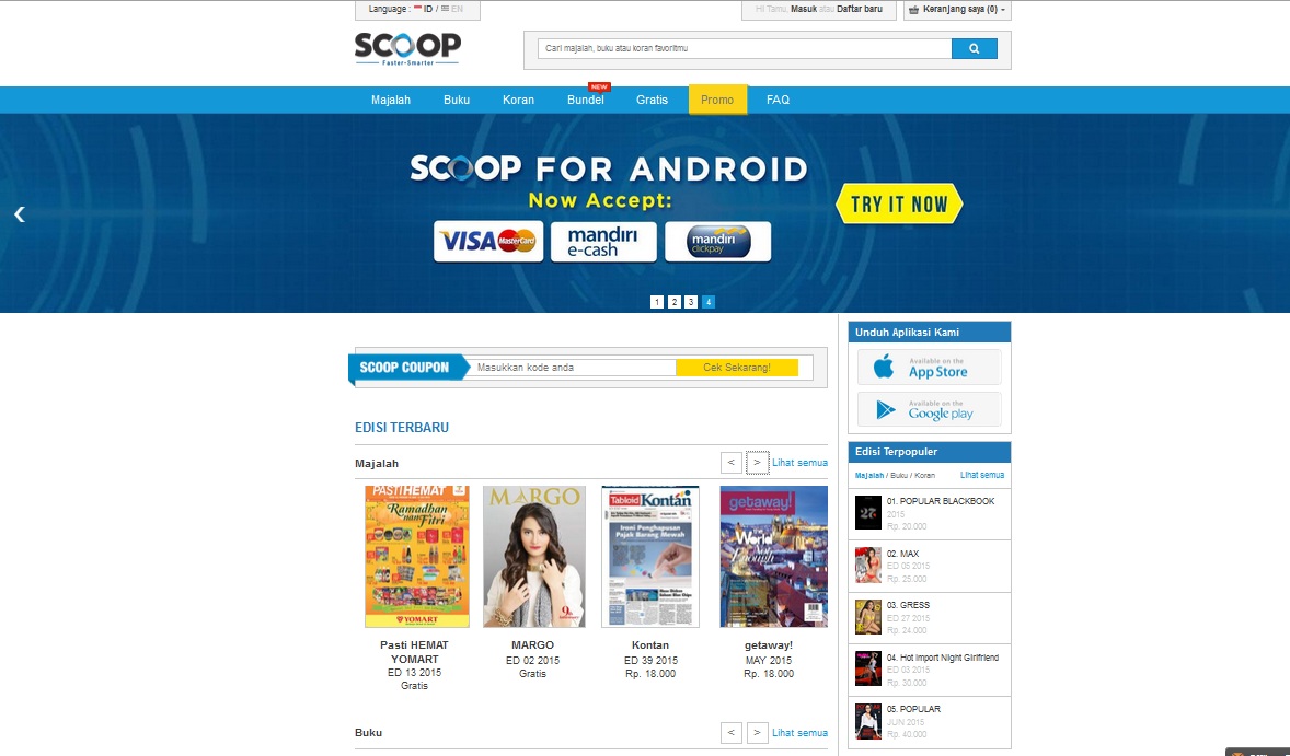 Setelah menjalin kerjasama dengan Gramedia Book Publishing Group pada tahun 2013, Scoop juga sekaligus meluncurkan toko online.