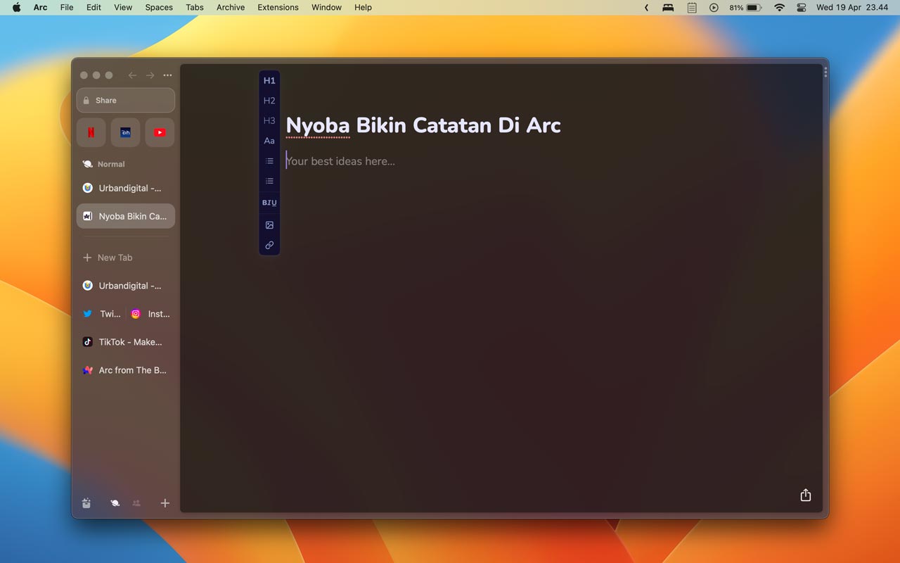 Sampai saat ini, saya sendiri masih berusaha membiasakan diri dengan pola baru di Arc. Jadi perlu dilihat lagi beberapa waktu ke depan. Walau begitu, tampilan Arc Browser harus diakui keren. Hm….