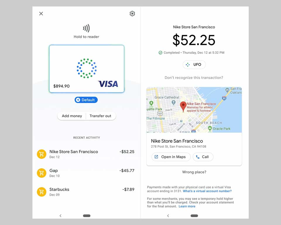 Kartu ini juga akan hadir lengkap dengan akun untuk mengontrol, baik melihat dana yang tersedia, riwayat pembelian, menambah dana, dll. Fitur di dalam aplikasi juga dilengkapi dengan layanan dari aplikasi Google lain. Seperti riwayat pembelian yang terlihat di peta (Google Maps).