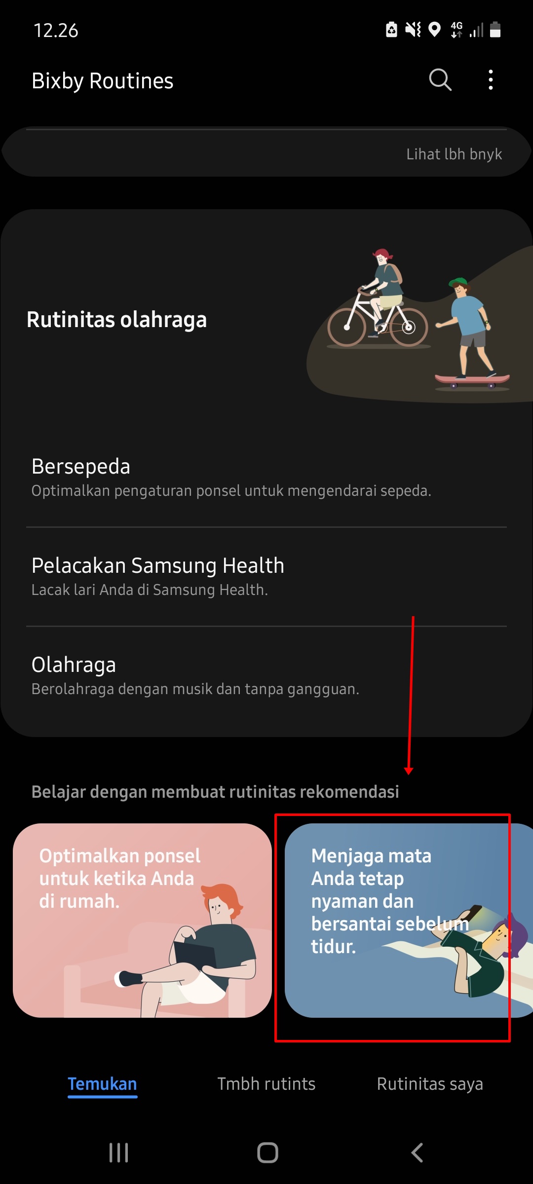 Sebenarnya tutorial kali ini lebih simpel dari yang sebelum-sebelumnya. Kalau sebelumnya kamu harus bikin rutinitas dari nol, sekarang kamu bisa pakai template rutinitas yang sudah disediakan oleh Samsung.
