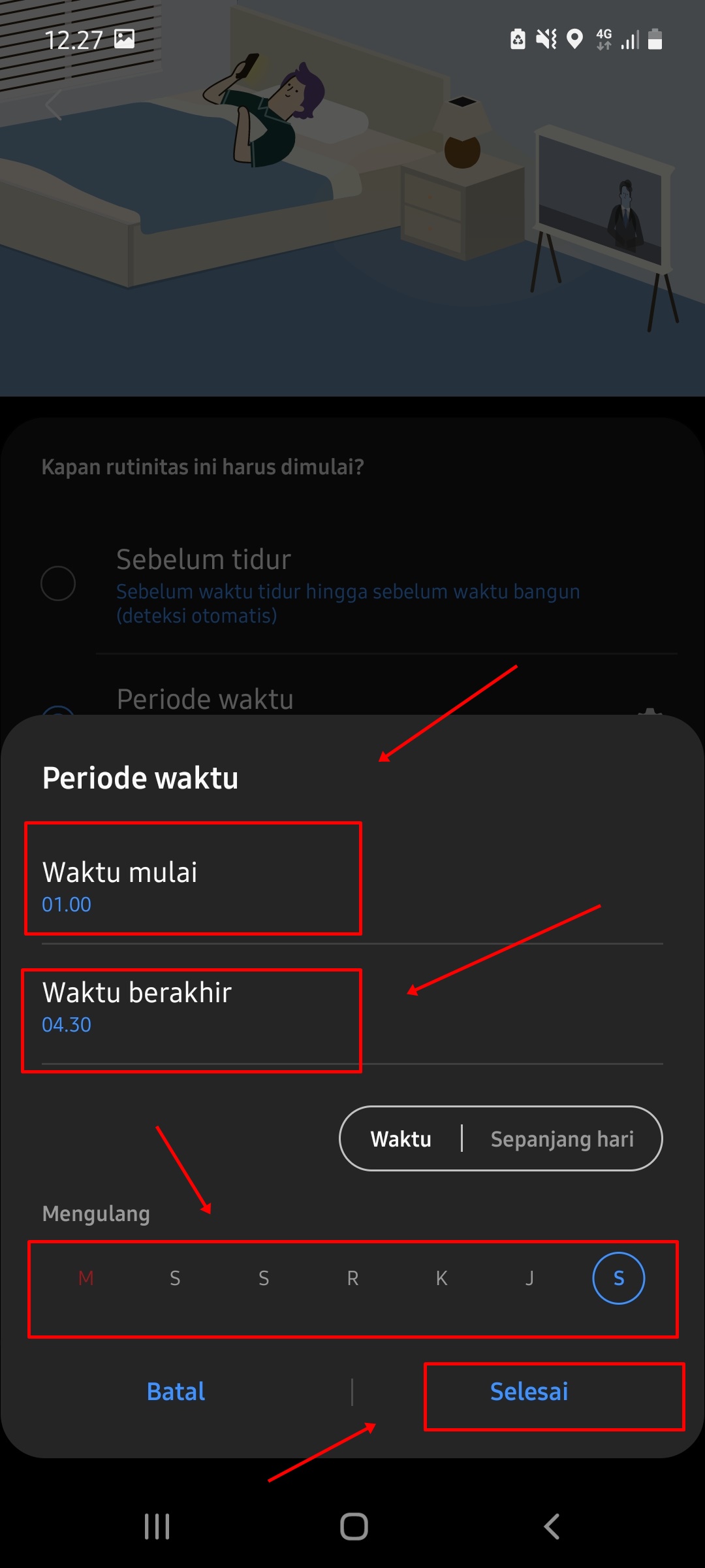 - Klik “Sepanjang Hari” jika ingin rutinitas ini berjalan setiap hari.