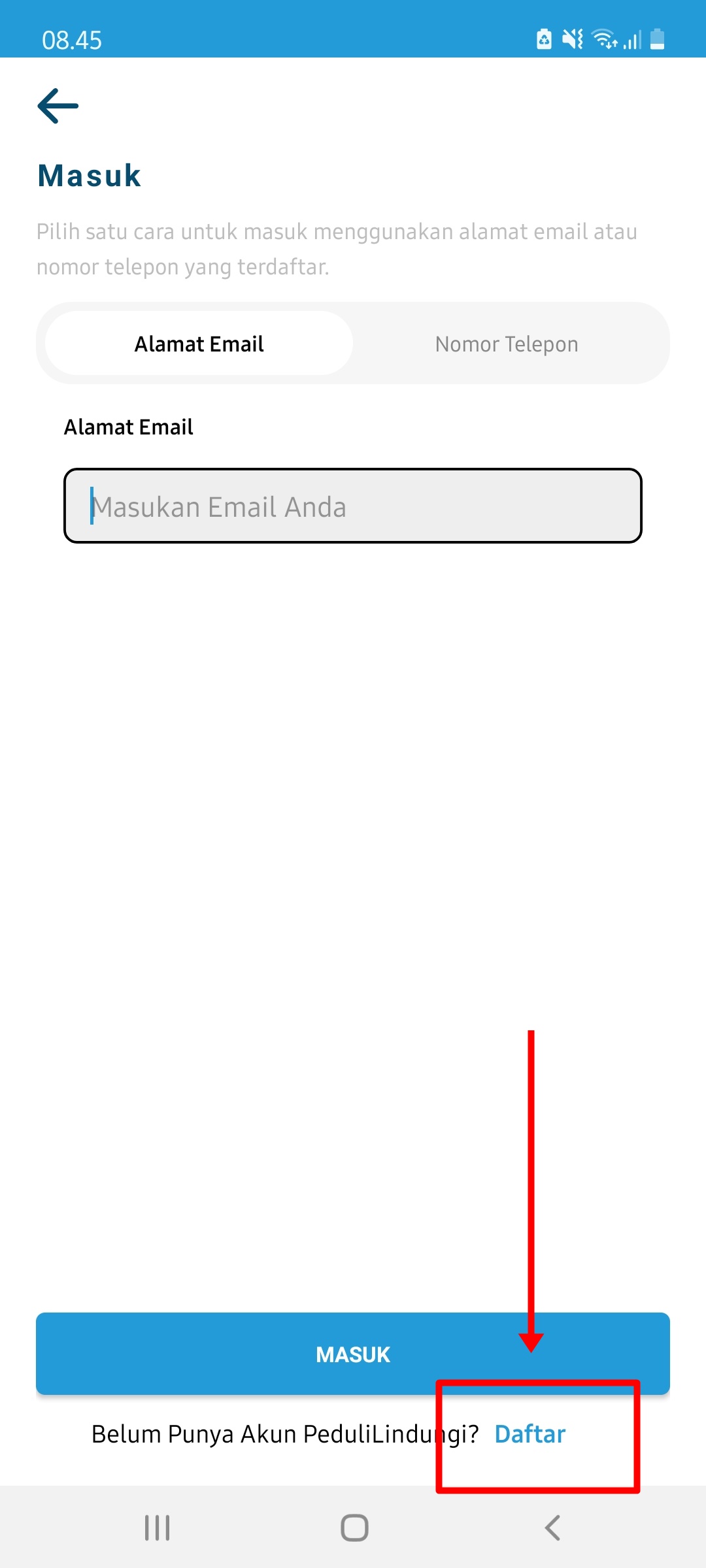 • Di halaman “Masuk,” klik label “Daftar” yang ada di pojok kanan bawah layar.