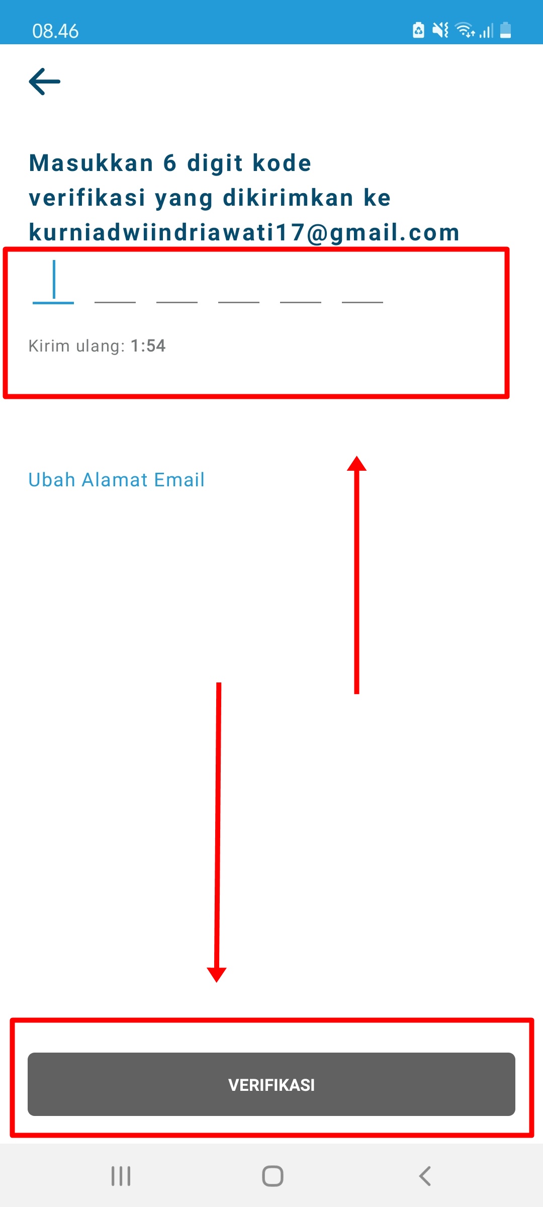 • Selanjutnya, masukkan 6 digit kode yang dikirimkan PeduliLindungi ke email-mu.