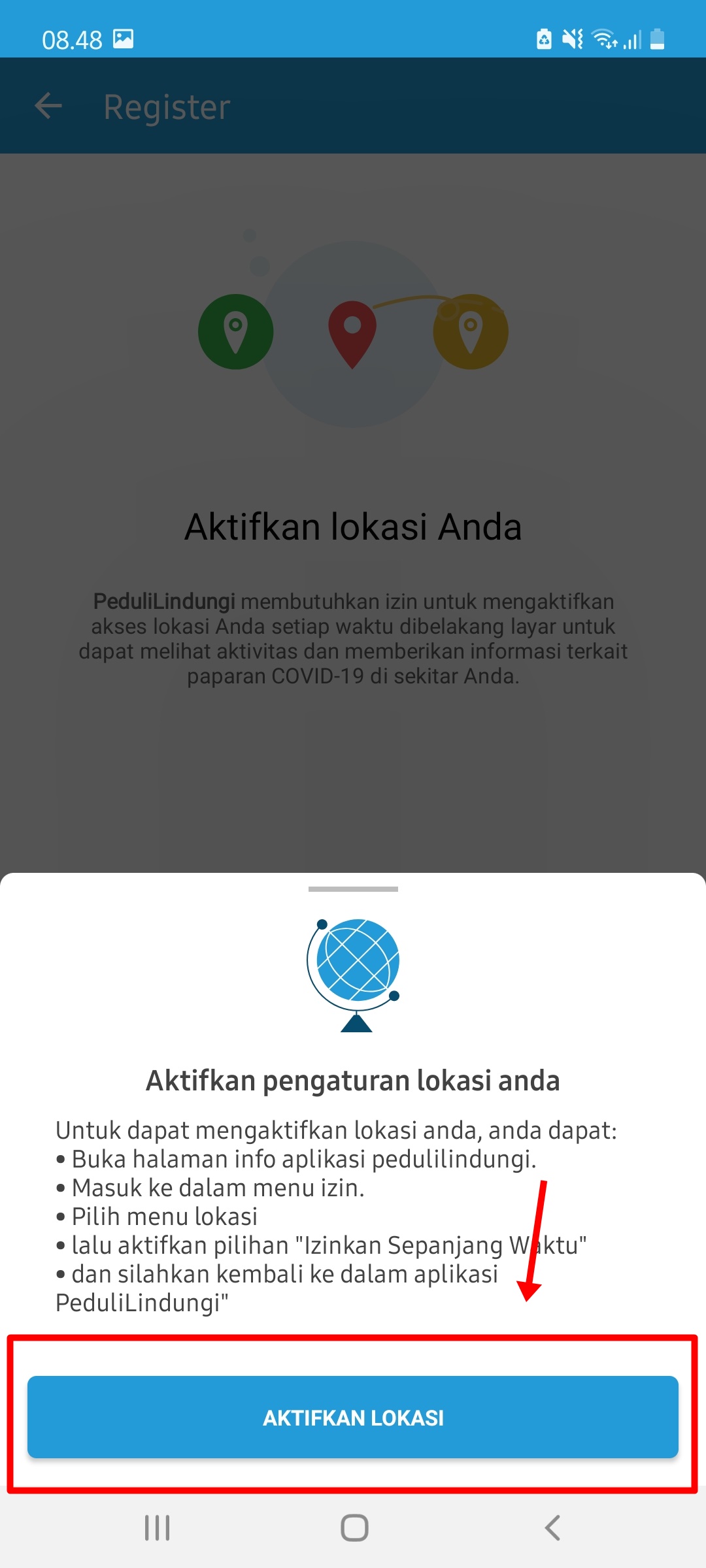 • Setelah itu aktifkan lokasi dengan mengklik tombol “Aktifkan Lokasi.”
