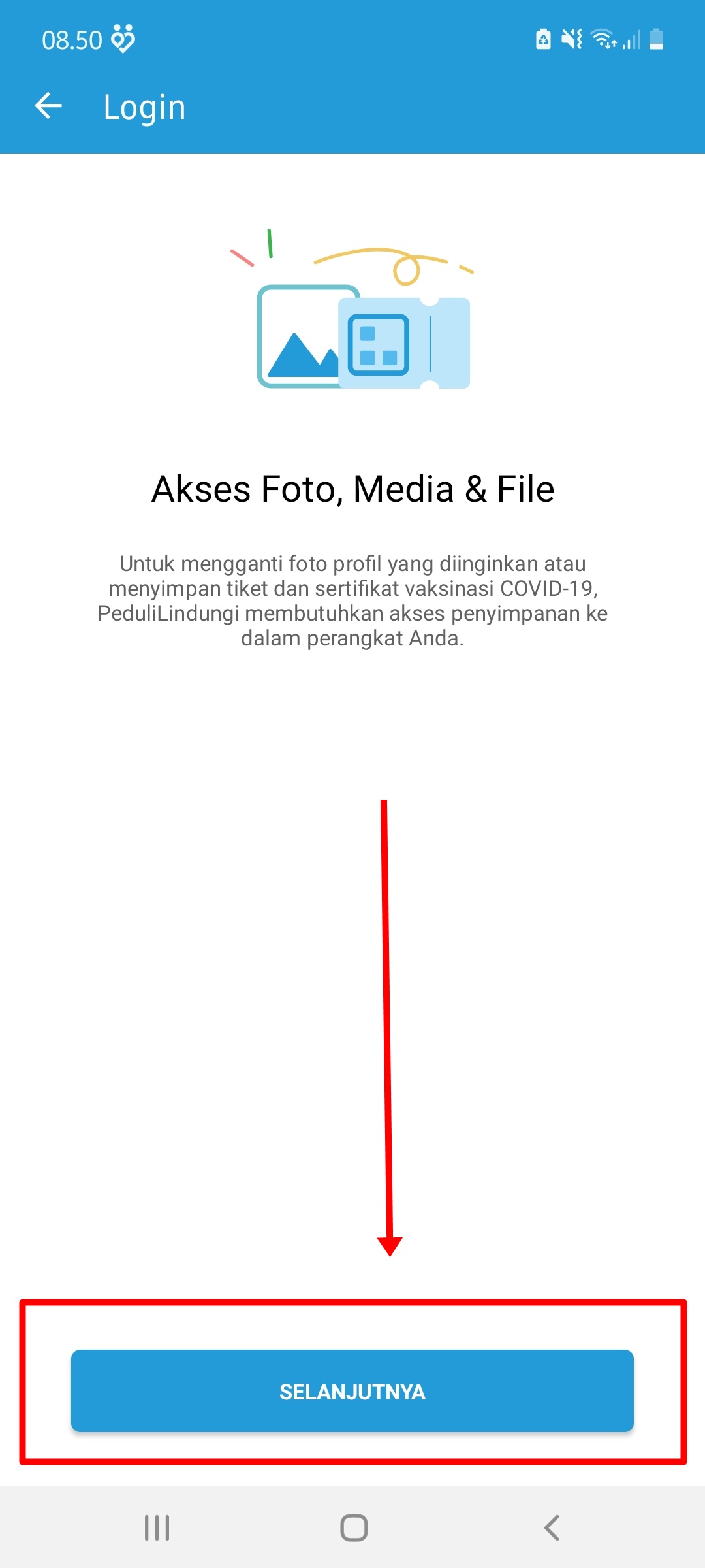 • Izinkan aplikasi mengakses foto, media atau file lainnya dengan klik tombol “Selanjutnya.”