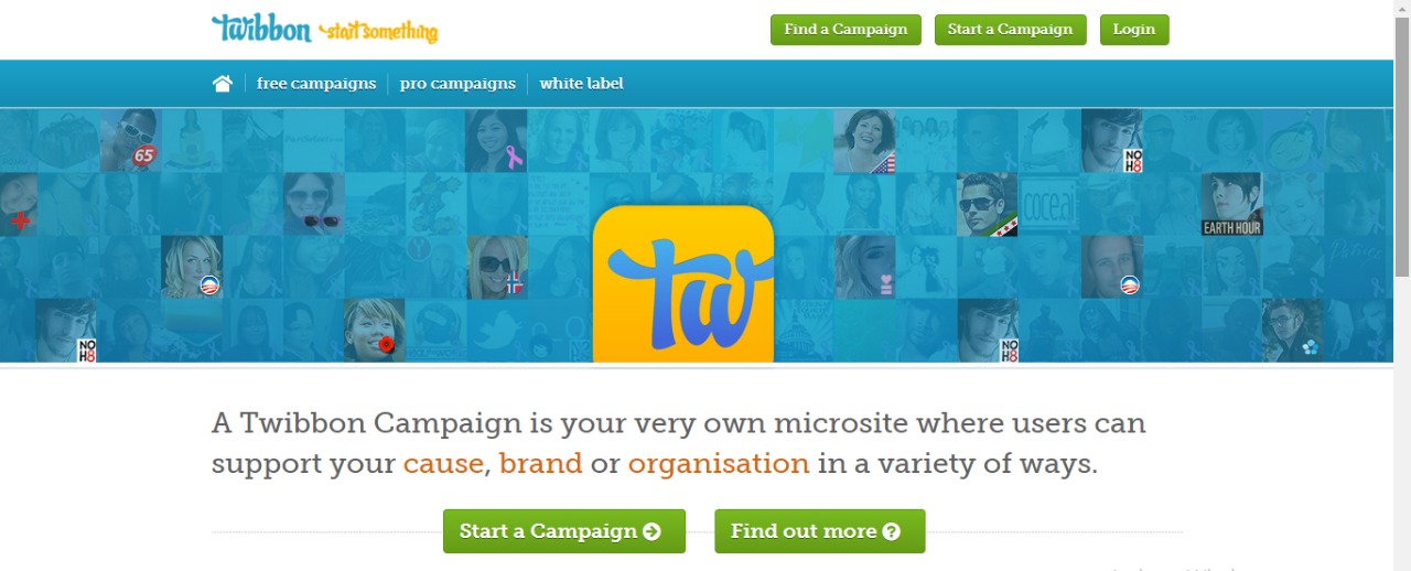 - Kemudian pilih opsi “Find Campaign” untuk mencari frame Twibbon yang telah tersedia. Kamu juga dapat memilih opsi “Start a Campaign” untuk membuat frame Twibbon versi sendiri untuk kepentingan tertentu