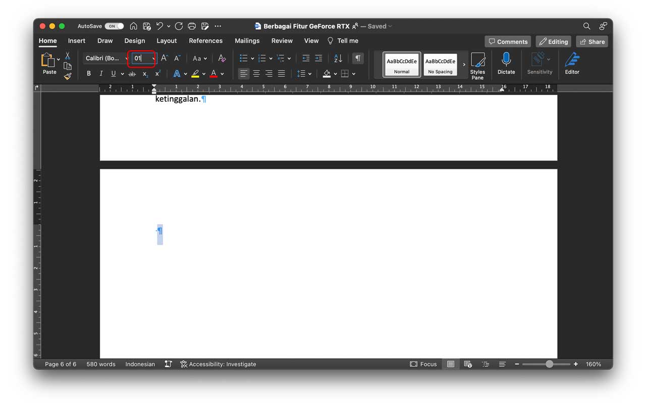 - Tekan shortcut Ctrl+Shift+8 (Windows) atau Command+8 (macOS) untuk memunculkan tanda paragraf.