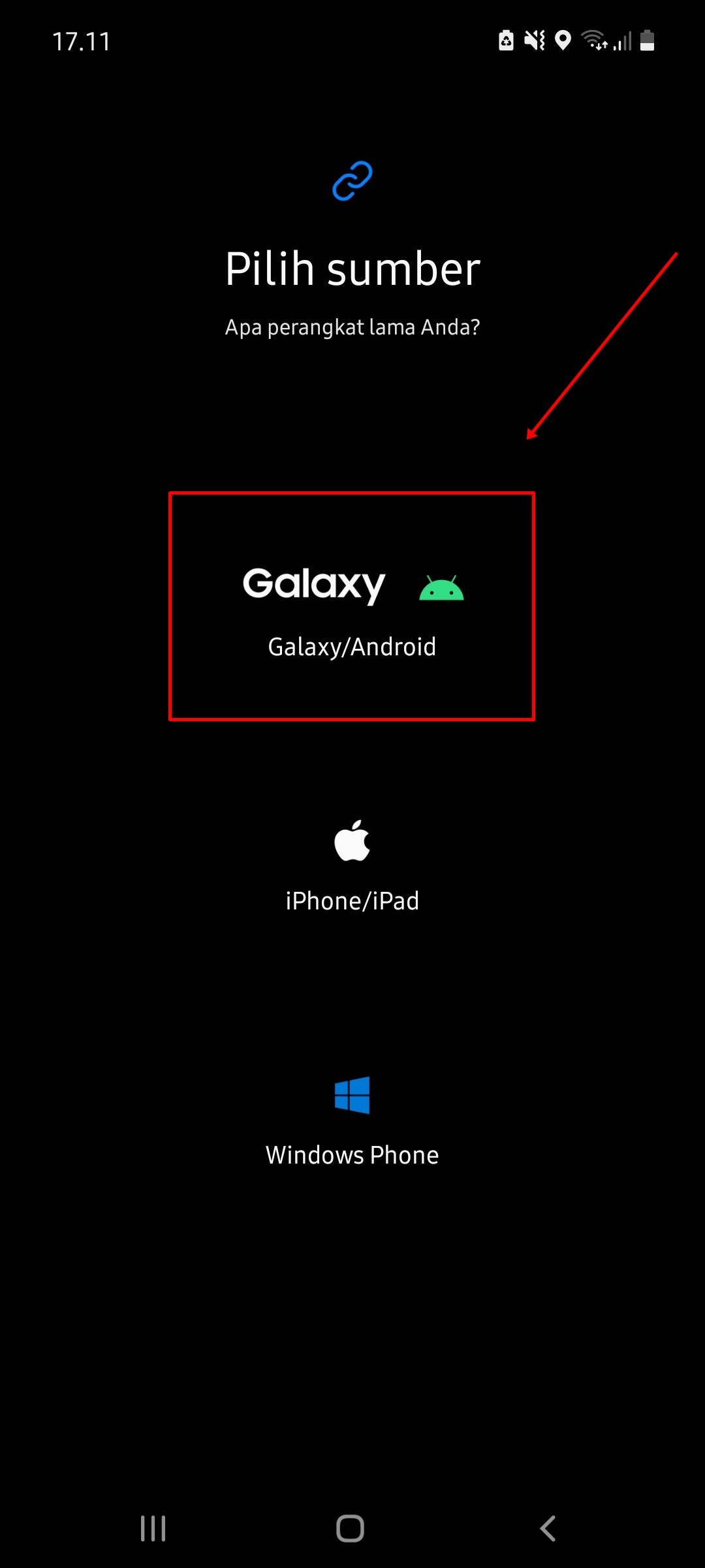 - Klik opsi “Galaxy/Android” di kedua ponsel.