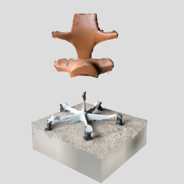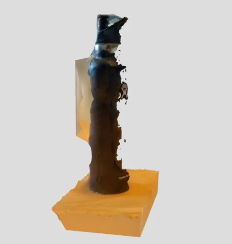 Lanjut ke hasil pemindaian botol air mineral. Hasilnya juga nggak sesuai dengan ekspektasi. Model 3D botol air mineral justru terlihat seperti bekas plastik gosong dengan bentuk abstrak.