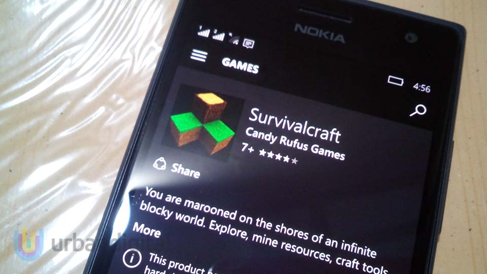 Salah satu game dengan genre blocky world yang tersedia di Windows Store adalah Survivalcraft. Game yang dibuat oleh Candy Rufus Games ini adalah game dengan cara permainan yang hampir sama dengan Minecraft.