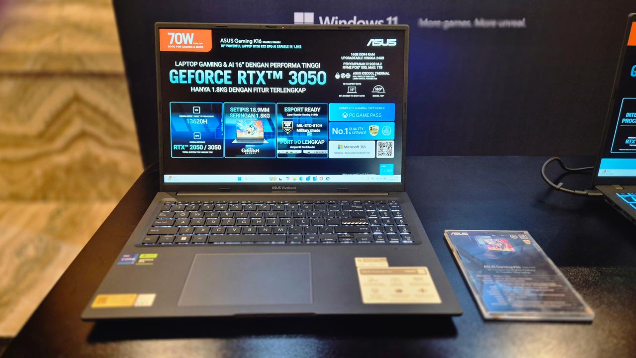 Dengan bobot di bawah 2 kg, K16 tetap portabel untuk dibawa ke kampus atau coworking space, tapi di dalamnya sudah tertanam prosesor terbaru, kartu grafis modern, RAM yang bisa di-upgrade, serta sistem pendingin yang andal.