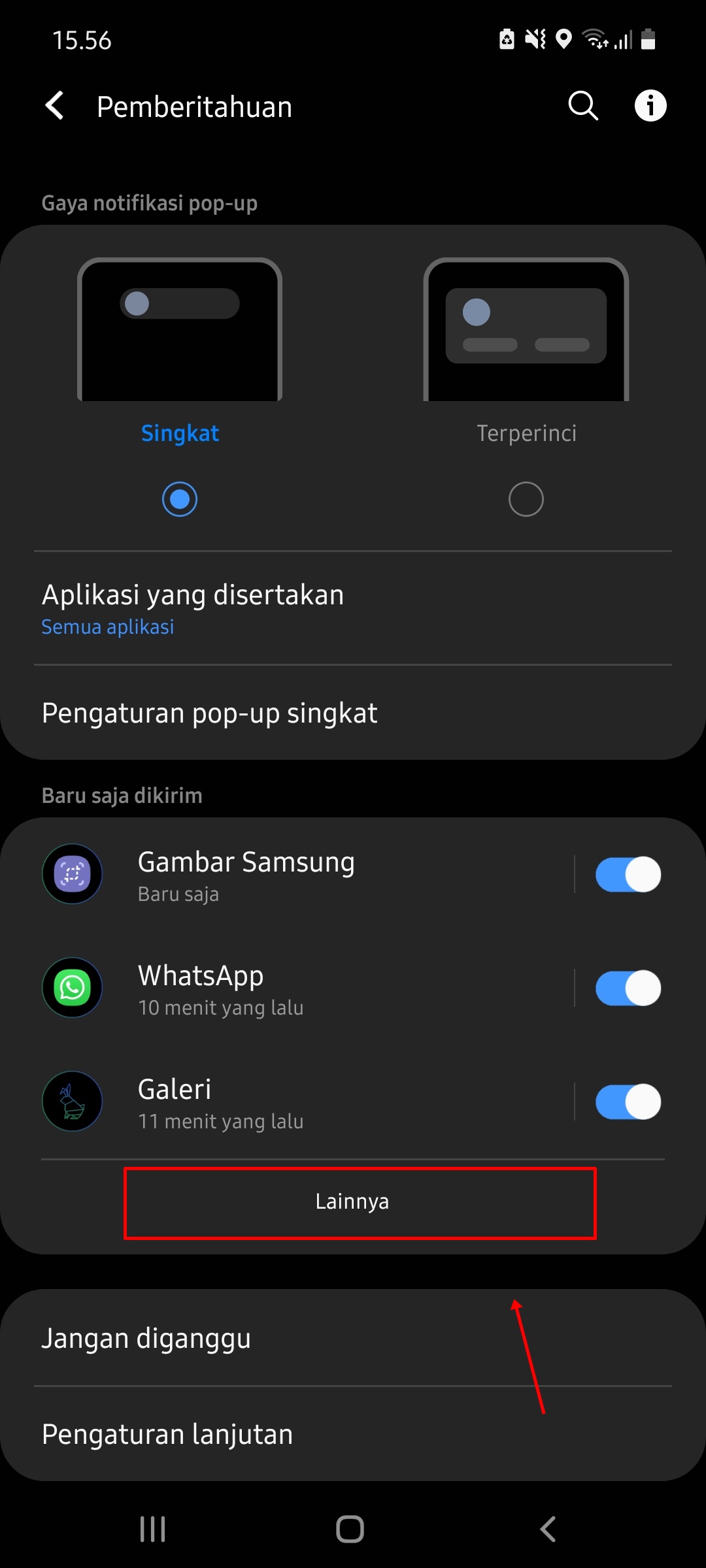 • Klik tombol “Lainnya” yang ada di bagian “Baru saja dikirim.”