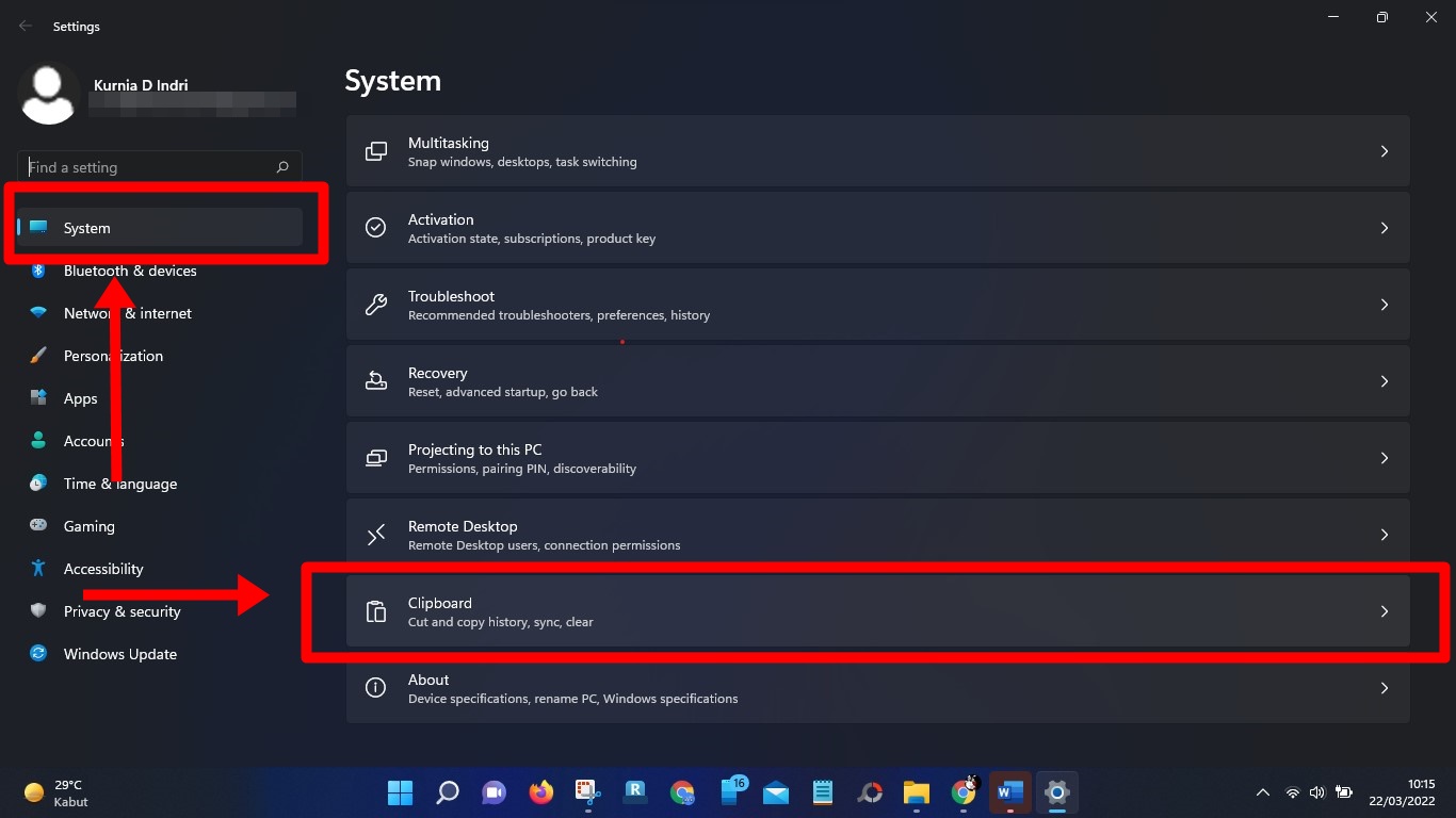 • Setelah itu klik halaman “Clipboard” yang ada di sisi kanan.