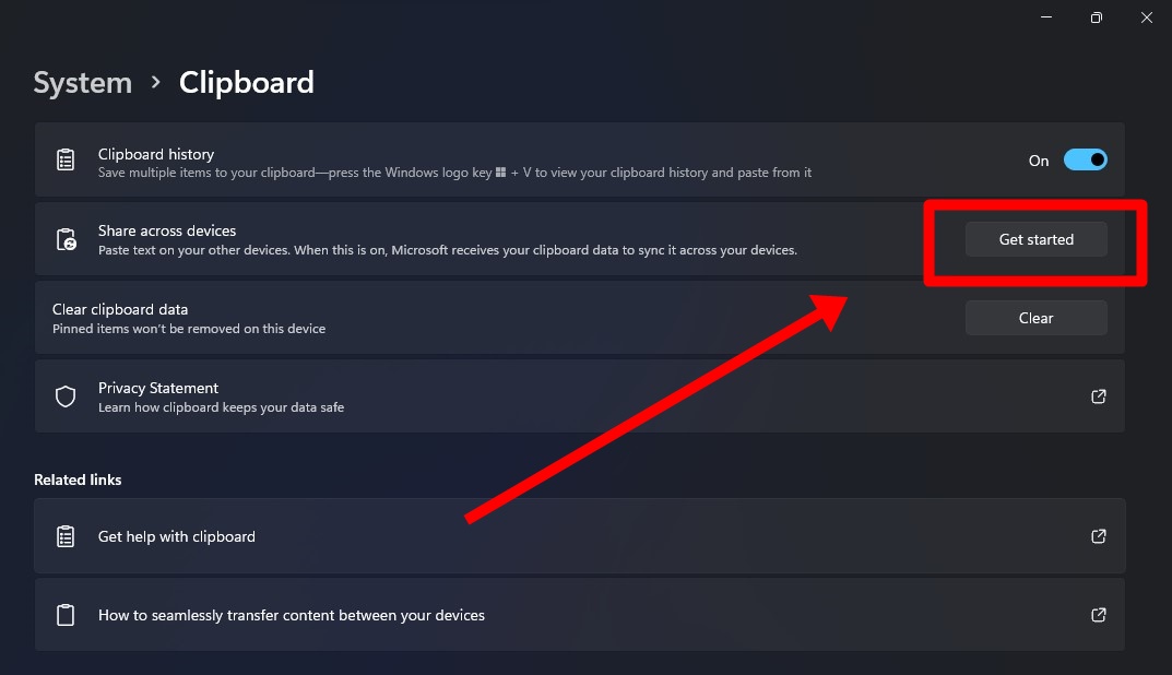 • Sekarang klik tombol “Get Started” di bagian “Share across devices.”