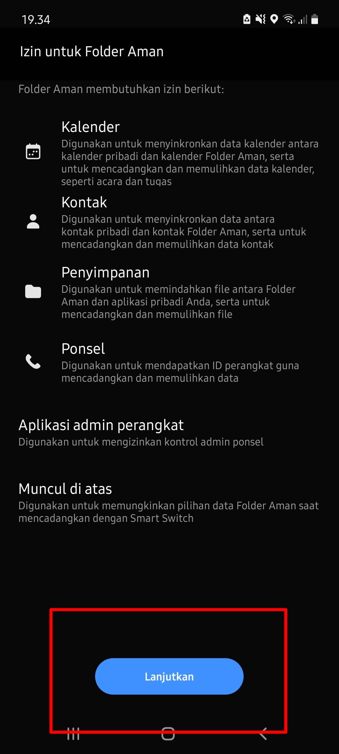 - Kemudian, klik tombol “Lanjutkan” untuk izin aplikasi.