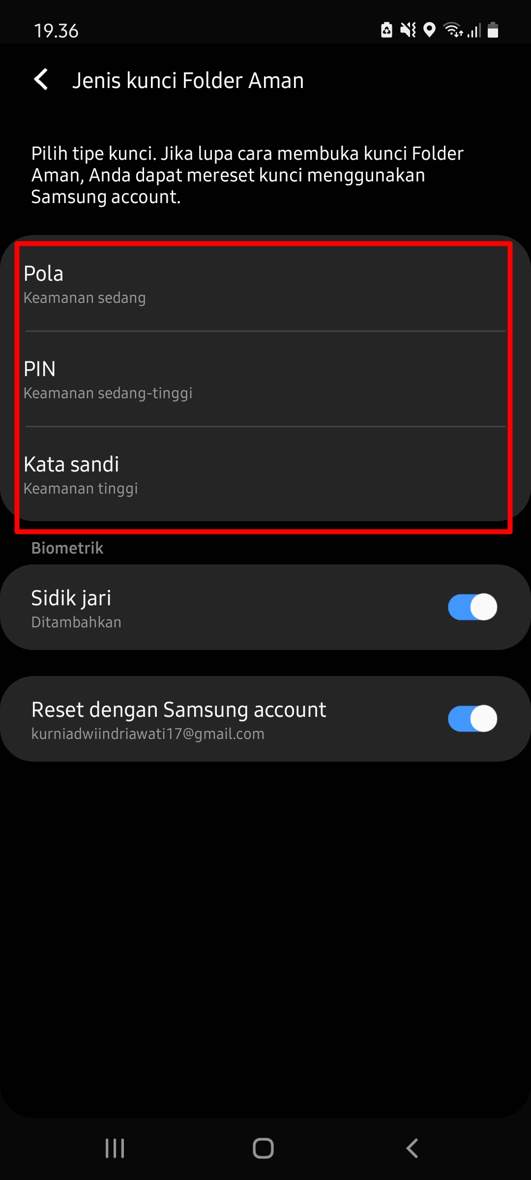 - Kalau sudah, sekarang pilih jenis kunci di bagian “Jenis kunci Folder Aman.”