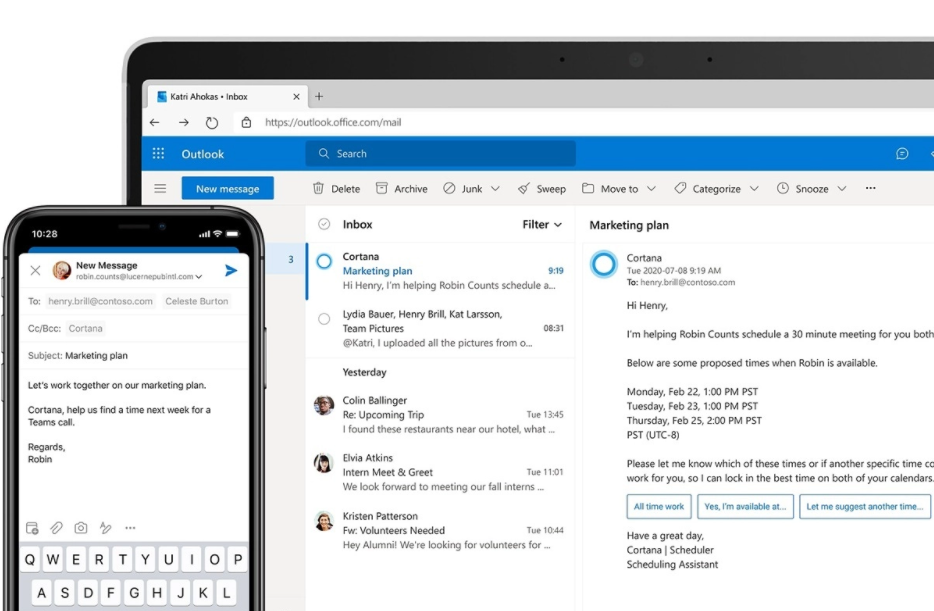 Tapi kalau kamu pengin bikin rapat di luar organisasimu, Cortana akan mengirim email ke peserta lain dan meminta mereka memilih salah satu jadwal yang sesuai denganmu (bisa lihat di gambar).