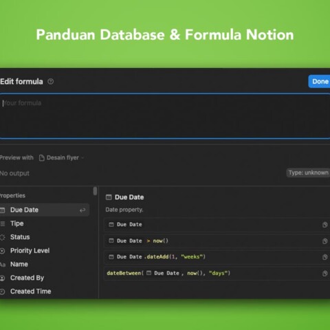 Notion Database & Formula 2.0: Panduan Lengkap untuk Menjadi Power User Anom 08/08/2025Artikel ini akan mengajak Anda terjun ke dalam pemakaian Database dan Formula Notion, sehingga Anda akan bisa membuat sistem yang lebih rapi, cerdas, dan otomatis.