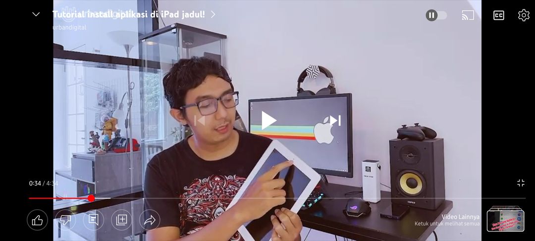 Saat menonton video dalam mode layar penuh dan misal kamu ingin melakukan interaksi, cukup klik layar satu kali. Setelah itu tombol Like, Dislike, Komentar, dll, bakal langsung muncul di dalam layar tanpa menghambat jalannya pemutaran video.