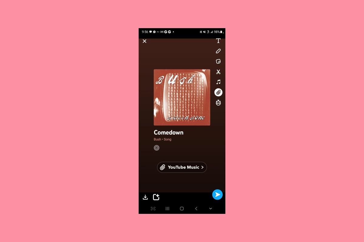 Sekarang kalau pengguna mengklik ikon share lagu ke Instagram, YouTube Music akan langsung mengarah ke tampilan Instagram Stories. Nah di Instagram Stories, pengguna akan melihat cover musik yang akan dibagikan. Kemudian setelah lagu tersebut resmi dibagikan, pengguna akan bisa memutar musik dengan menekan tautan yang ada di sudut kiri atas.