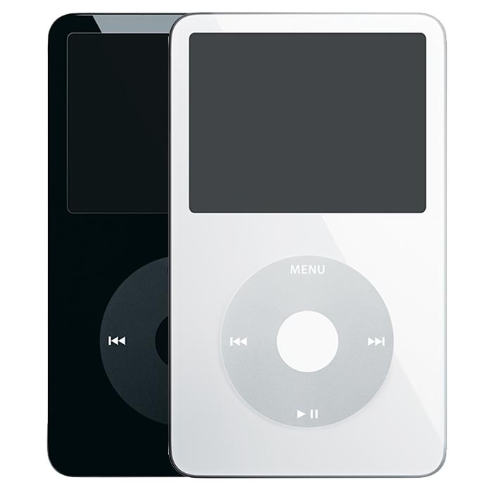 Rilis: Oktober 2005 dan September 2006. Berbasis hard drive, iPod ini memiliki Click Wheel, layar besar berwarna (foto dan video), dan punya colokan USB.